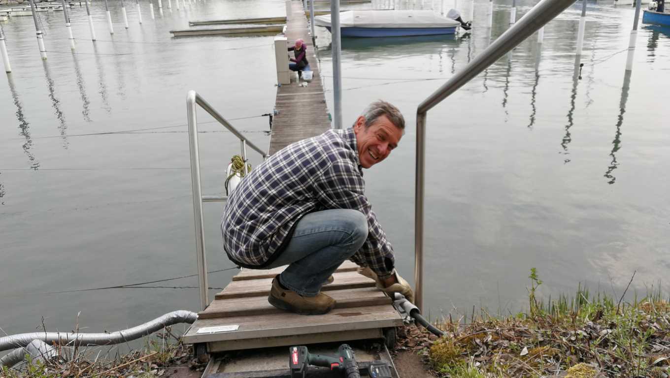 Rechtzeitig vor dem Start in die Saison wird der Gemeindehafen Fischerinsel am Samstag, 13.4.2019, auf Vordermann gebracht
