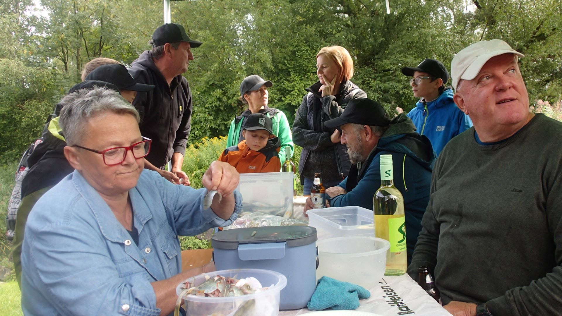zeigt Herma Decini den jungen Fischern, wie ihr Fang ausgenommen und filiert wird.