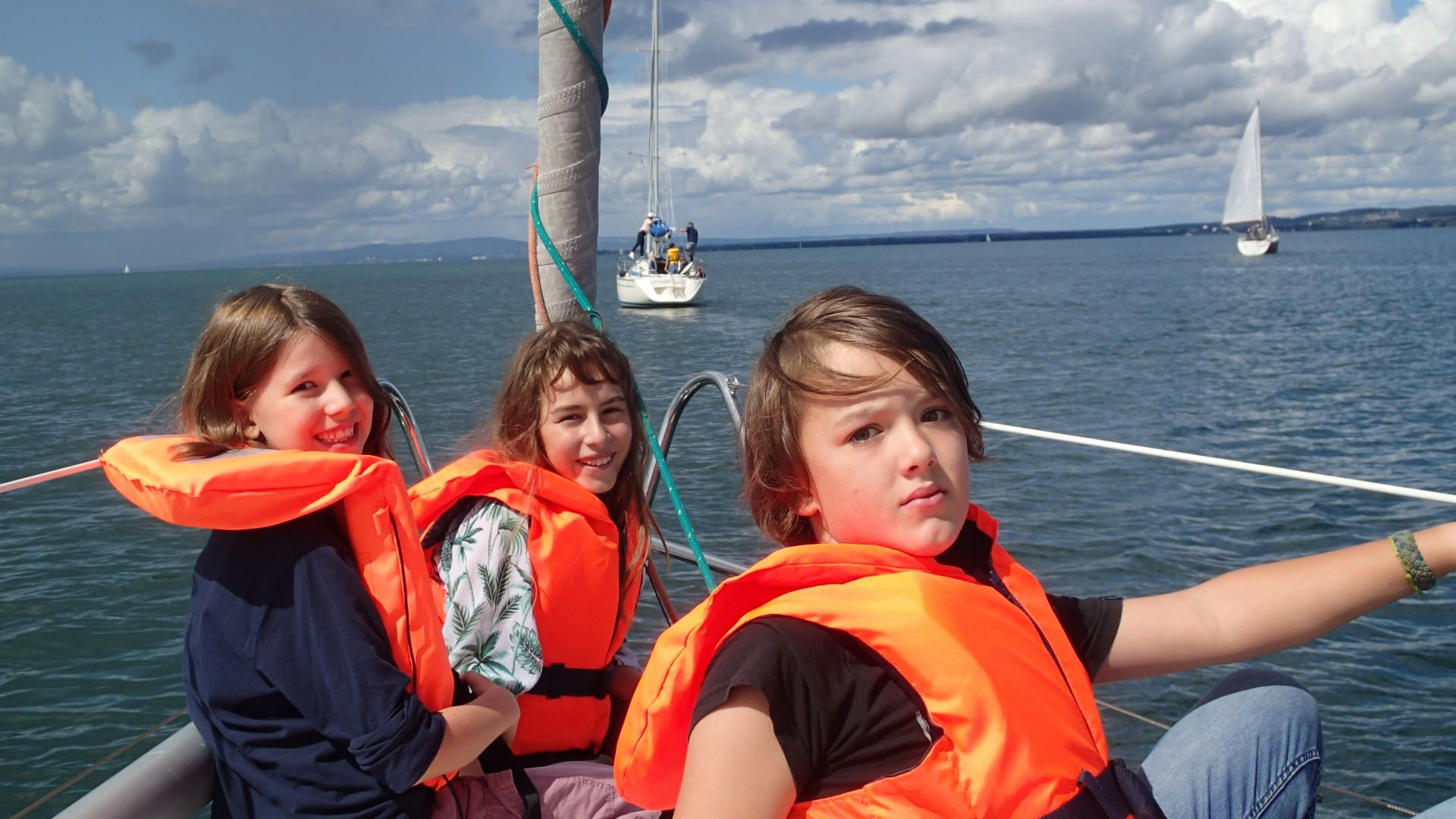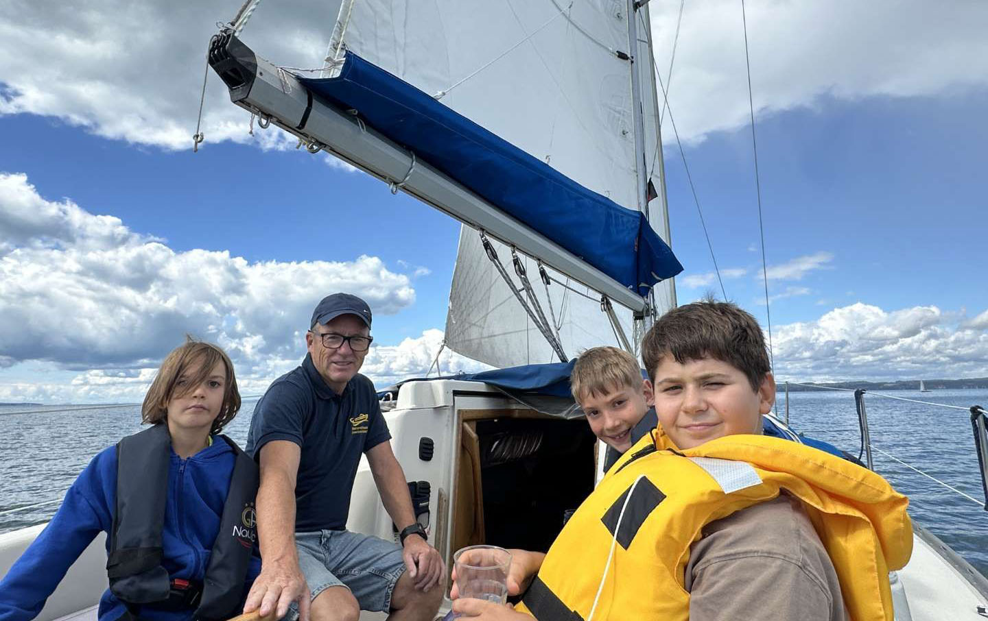 Wie bestellt frischt der Wind leicht auf und unter prallen Segeln erleben unsere Kinder einen gemütlichen Törn.